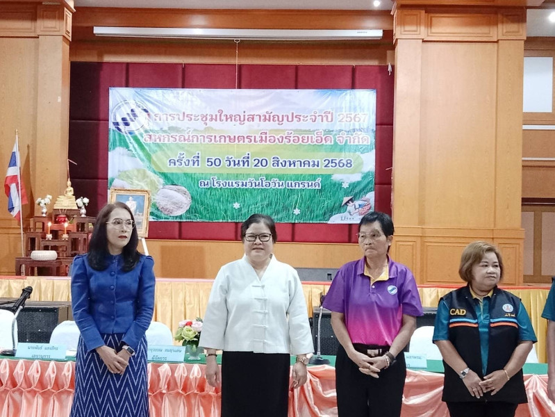 วันพุธที่ 20 สิงหาคม 2568 เวลา 09:00 น. นางสาววัชรี ปุกหุต สหกรณ์จังหวัดร้อยเอ็ด เป็นประธานในพิธีเปิดการประชุมใหญ่สามัญประจำปี 2567 ของสหกรณ์การเกษตรเมือง ร้อยเอ็ดจำกัด ปีบัญชีสิ้นสุดวันที่ 31 มีนาคม 2568 โดยมีนางสัญณ์ญาดา แก้วกรม ผู้อำนวยการกรมส่งเสริมสหกรณ์ 1 เข้าร่วมประชุม เพื่อรับทราบผลการดำเนินงานของสหกรณ์ และประธาน กรรมการ ผู้จัดการ ผู้ตรวจบัญชีสหกรณ์จังหวัดร้อยเอ็ด สมาชิกสหกรณ์ ผู้ที่เกี่ยวข้องเข้าร่วมประชุม ณ โรงแรมวันโอวัน แกรนด์ ห้องประชุมจตุรพักตรพิมาน อำเภอเมืองร้อยเอ็ด จังหวัดร้อยเอ็ด